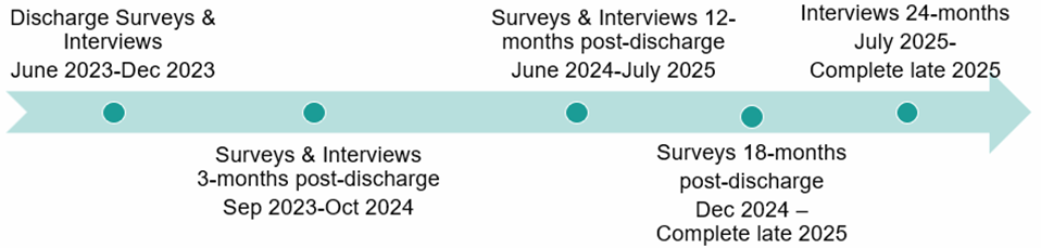 - Discharge and 3 month post-discharge data collection completed from September 2023 - October 2024 and 12 month post-discharge data collection ongoing from June 2024 to July 2025.