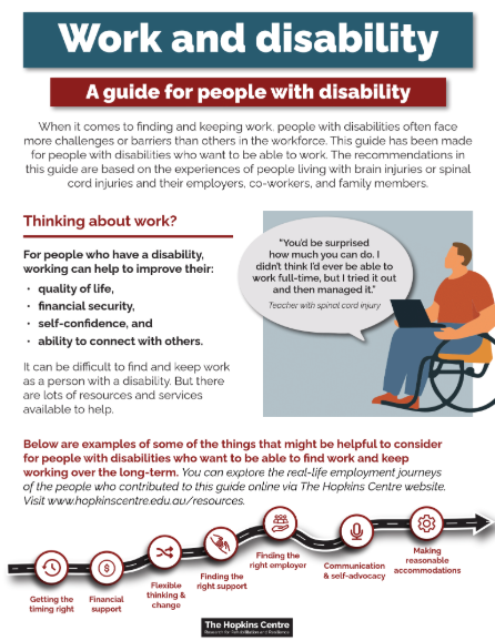 The Hopkins Centre is pleased to share two new evidence-informed guides designed to support sustained employment following acquired brain injury (ABI) or spinal cord injury (SCI), developed through a Seed Grant research project led by Dr Jessie Mitchell.
